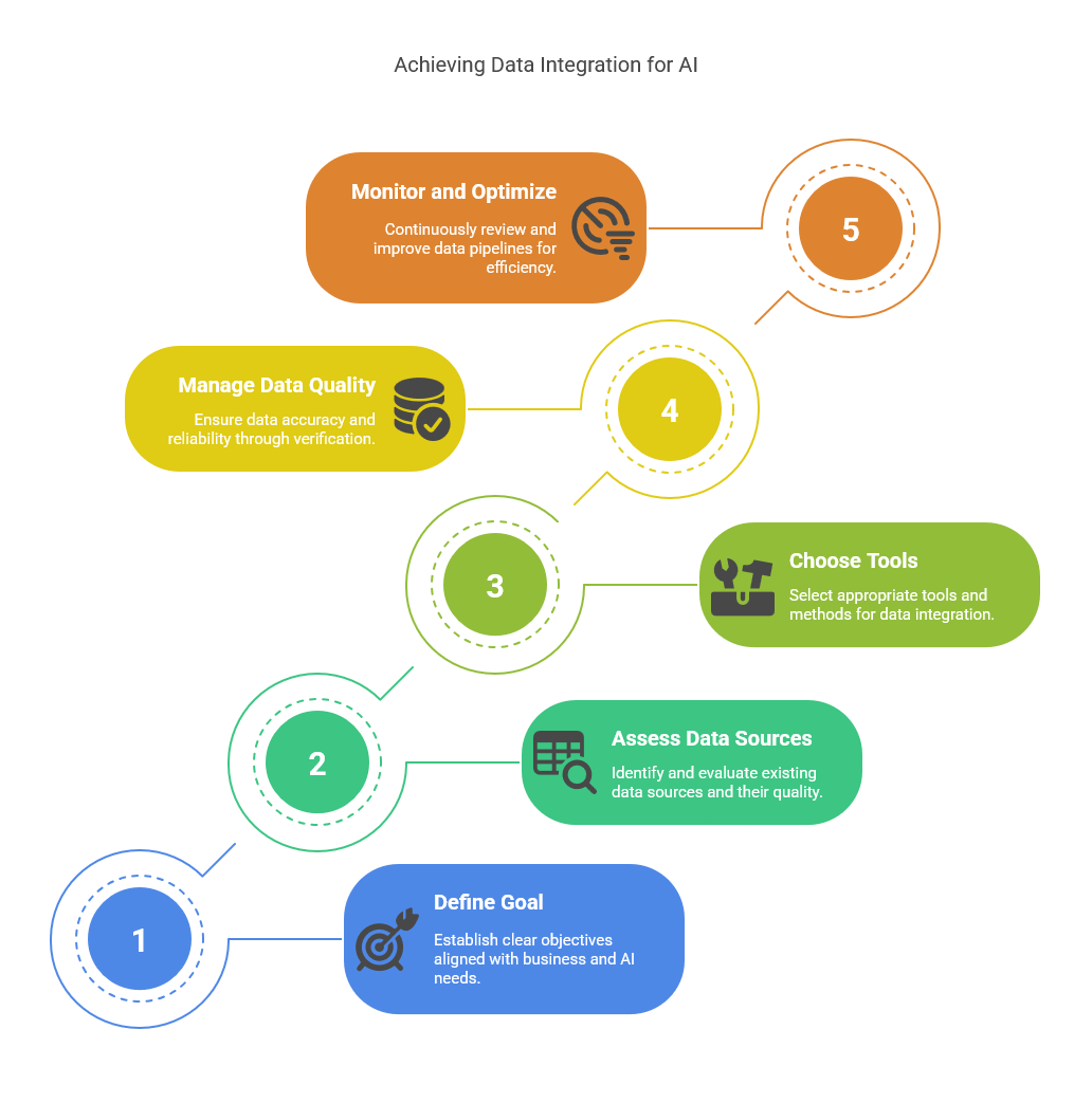 The first step to integrating data and preparing it for AI is to determine a goal for the integration program. This goal must be aligned with your overall business objectives and AI objectives.